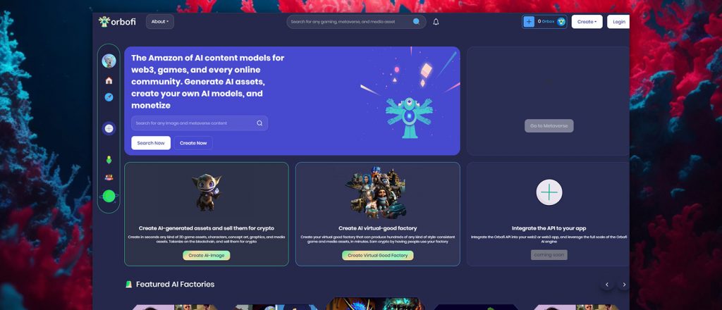 Orbofi – це платформа для створення згенерованих штучним інтелектом активів, віртуальних товарів і сфер спільнот, що дозволяє користувачам створювати, шукати і продавати ці предмети. За допомогою численних функцій програми можна створювати широкий спектр контенту, включаючи 2D-ігрові об’єкти та персонажів, концепт-арт, графіку та медіа-активи. Токенізація цих активів на блокчейні дозволяє торгувати ними за криптовалюту. Midjourney, Stable Diffusion, Dall-e, Octane Render та UnReal Engine 5 – це лише деякі з технологій на основі штучного інтелекту, які використовуються для створення всіх активів, що дозволяють створювати гіпердеталізовані, кінематографічні та фотореалістичні візуальні ефекти.